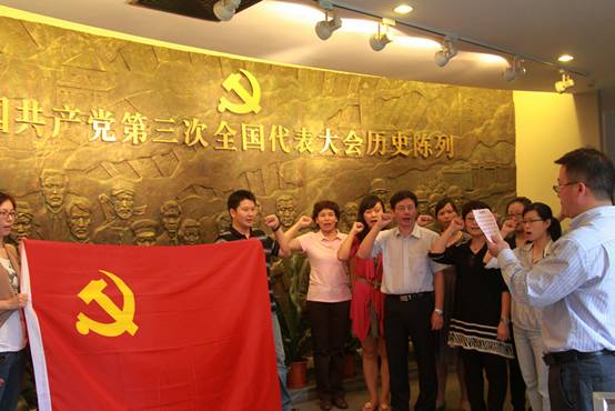当天,党员们首先来到中共三大会址纪念馆。据介绍,1923年6月12日至20日,中国共产党第三次全国代表大会在广州举行,这是迄今中国共产党唯一在广州召开的、具有重大历史意义的全国代表大会,对中国革命产生了巨大的影响。会议确立了国共合作的方针,为共产党组织的迅速发展,并最终总结形成统一战线理论奠定了重要基础。在深入学习中国共产党建党初期艰苦卓绝的奋斗历程后,党支部全体党员在书记谢伟光同志的带领下重温了入党誓词。